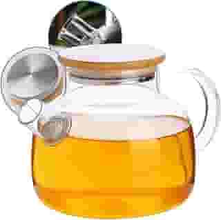 7. Chaleira de Vidro Borossilicato com Tampa de Bambu 1L