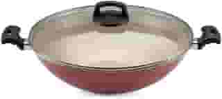Este modelo é um híbrido entre uma paellera e uma wok, com um diâmetro de 28 cm e laterais mais altas. Seu revestimento antiaderente cerâmico na cor cereja oferece um visual atraente e a promessa de um cozimento mais saudável, livre de PFOA.